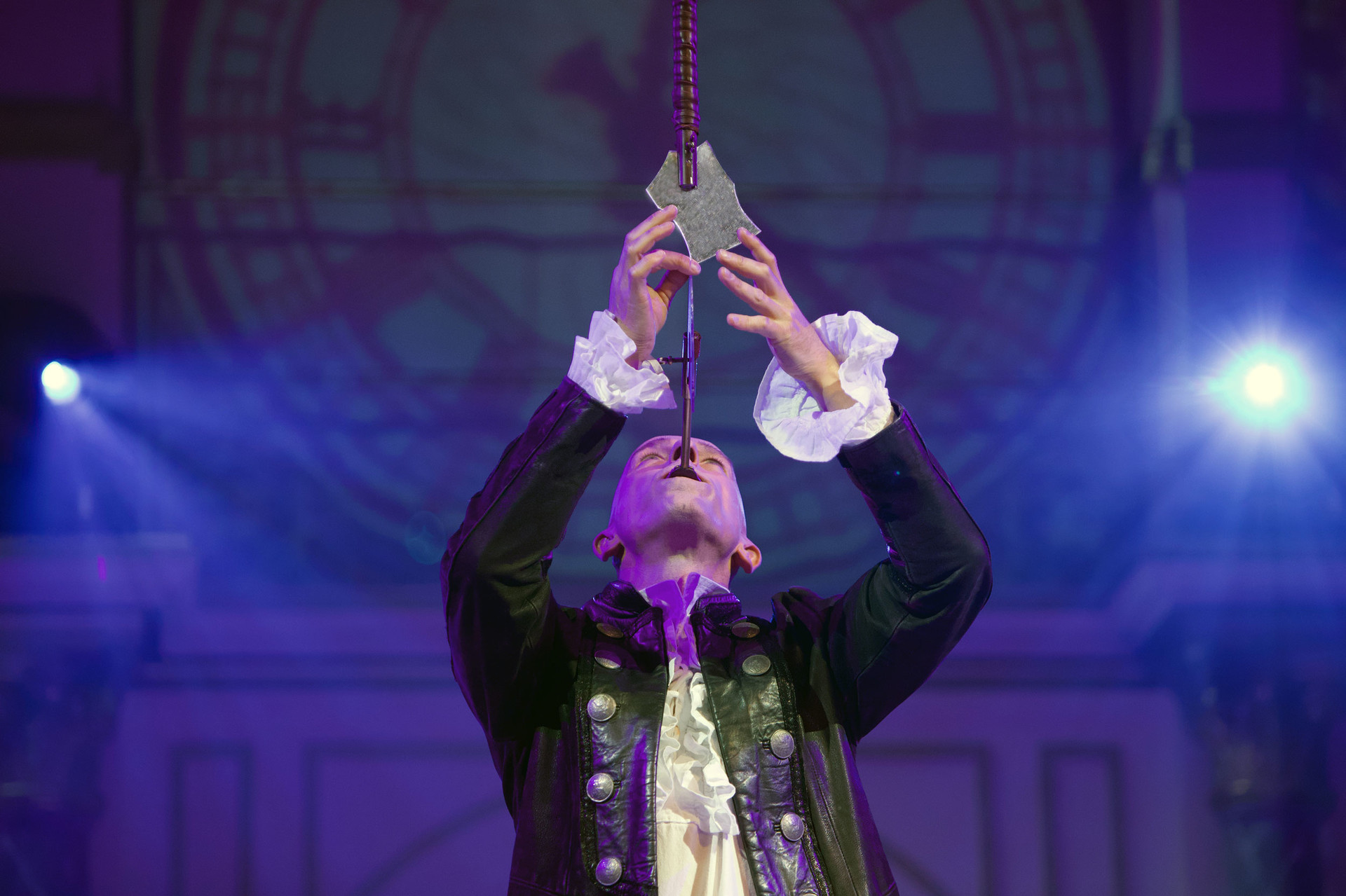 Wolf a plusieurs talents : magicien, ventriloque ou animateur. Il parcourt le monde depuis plus de vingt-cinq ans. Ce qui fait l’originalité de son numéro, ce n’est pas seulement ce qu’il appelle le looping, ce sont les accessoires qu’il utilise : les éclats acérés d’un miroir brisé qui constituent les pointes du poignard et de l’épée. Wolf a composé lui-même la musique de son numéro et confié à Michael Perev, un styliste berlinois renommé, la création de son costume et de son matériel.